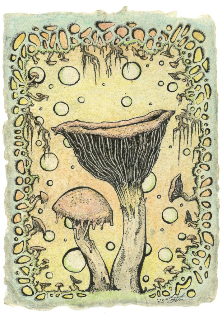 20 x 15 original tegning i blekk og blyant på hjemmelaget papir, 2023