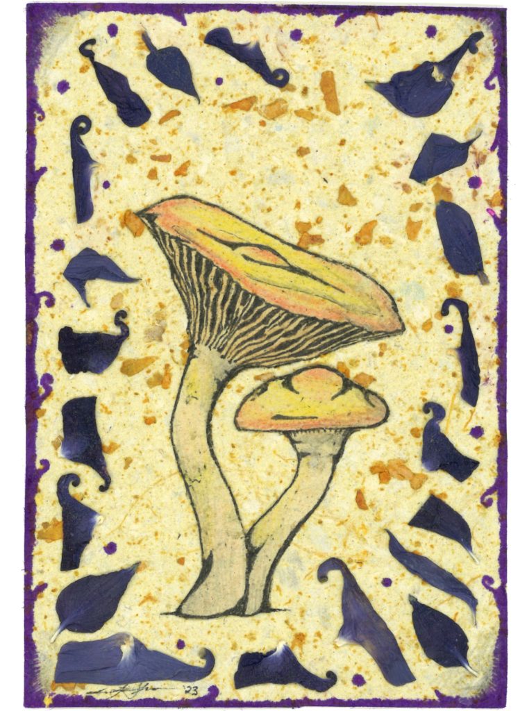 8 x 12, blekk, blyant og blomster på hjemmelaget papir