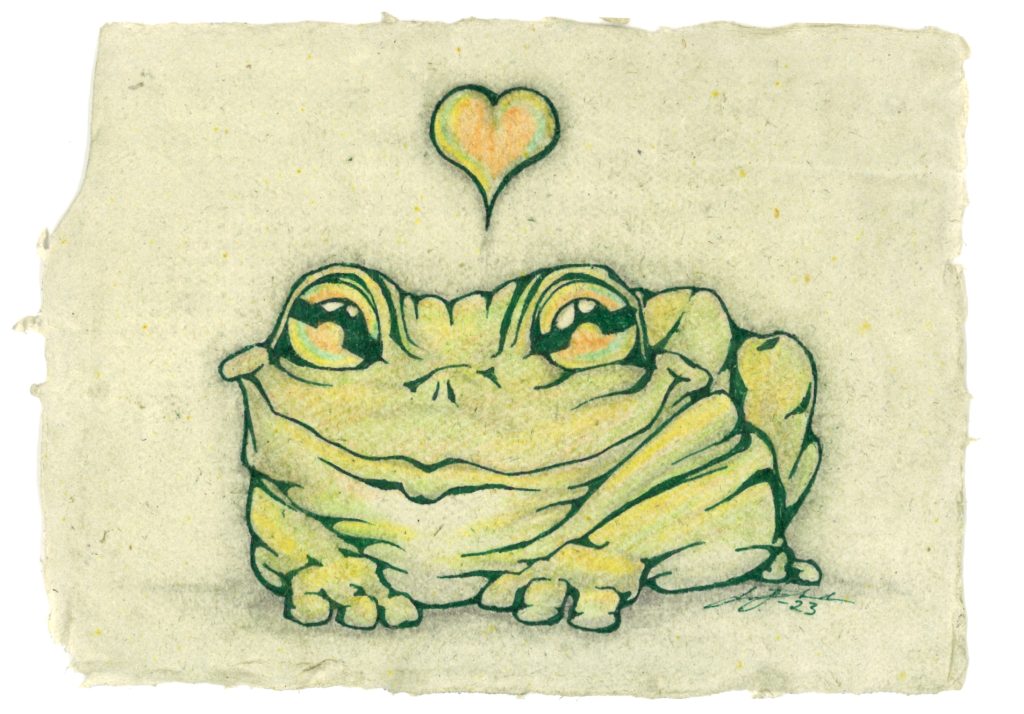 16 x 12, blekk og blyant frosk på hjemmelaget papir